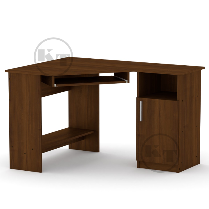 Стіл комп'ютерний СУ-13-це кутовий, зручний і водночас простий стіл. У стола СУ-13 бвелика робоча поверхня.. Справа під стільницею  розташована містка, закрита тумба, у якому можна скласти потрібні папери, документи, довідкову  літературу  та інші, необхідні Вам для повсякденної роботи предмети. Комп'ютерний стіл СУ-13 має висувну дошку для клавіатури, додаткову полицю внизу зліва. На ній, крім системного блока, можна, у разі потреби, розмістити потрібні для роботи документи, паперу та книги.