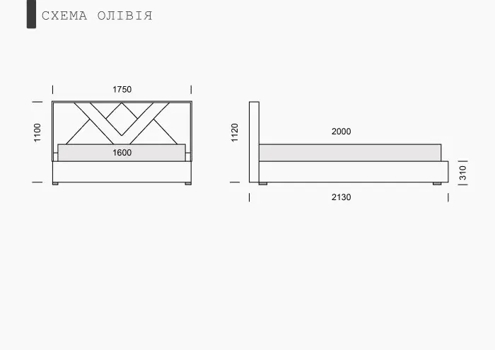 Ліжко Олівія 1.6, з підіймальним механізмом, фабрика Єврософ, Україна
